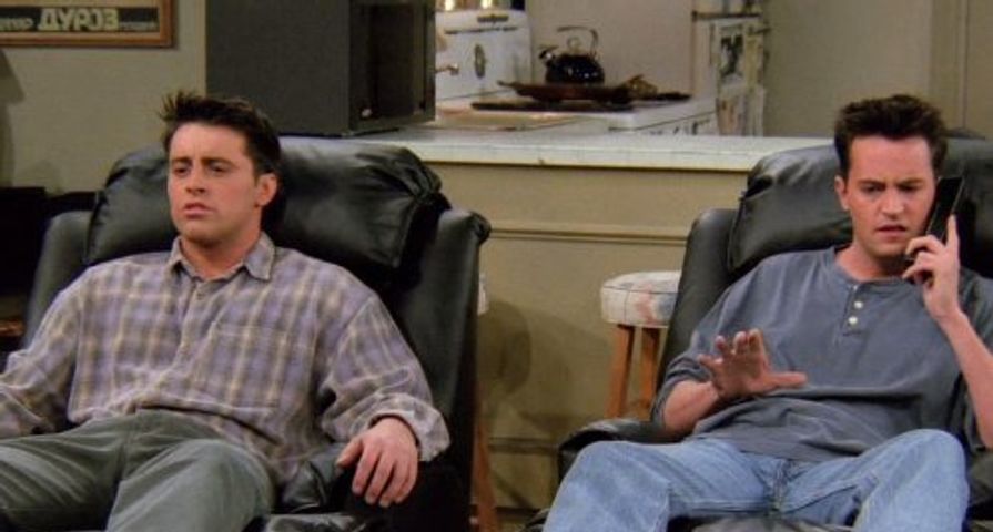 Joey starts making money when he gets a new big acting gig on Days of Our Lives, so he goes out and buys some things for the apartment like a big screen TV and two leather recliners, one for him and one for Chandler. Chandler is so excited, he jumps up and down and says, "which one is mine?!" and Joey says, "whichever one you want, buddy." The two recline back at the same time, pull out the footrest and simultaneously let out a relaxing sigh. Ahhhhh. They end up spending the rest of the episode glued to the chairs in a television daze. Joey and Chandler spend so much time together in the following episodes, sitting side by side in their matching barcaloungers that Joey even goes on to name his Rosita…until Rachel ends up breaking his chair in season seven.
